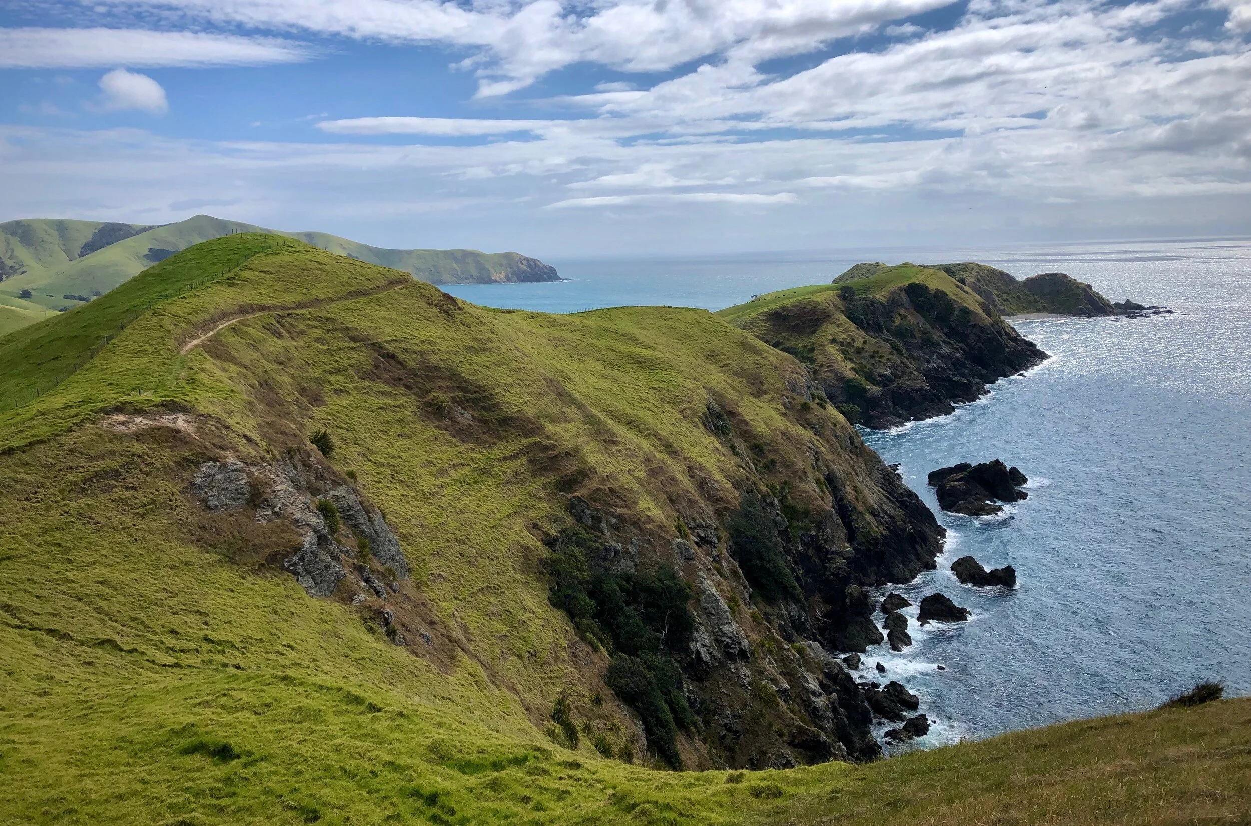 The first part of the hike starts with a chilled out walk along the sprawling sands of Port Jackson Beach. Towards the end of the beach it joins the Muriwai Walk as it climbs through farmland past the former location of the Wharekaiatua Pa.